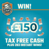 £150 Tax Free Cash Prize PLUS Instant Wins