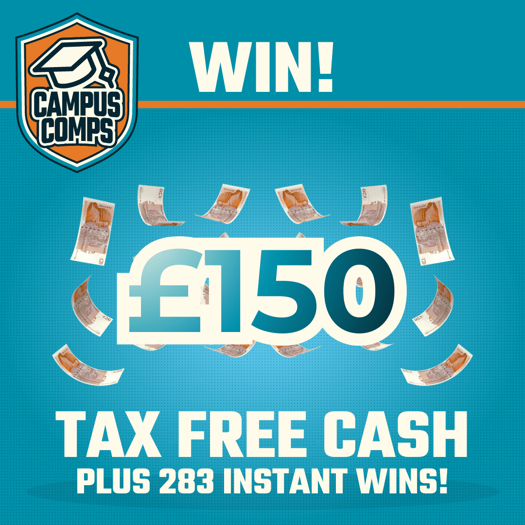 You may enter the competition online or for free by post by sending your entry to Campus Comps on a postcard. You must have an account on Campus Comps for your entry to be processed. All details on your entry MUST correspond to the details on your account to receive the order confirmation and ticket number. Postal entries received without a registered account cannot be processed.
