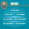 Instant wins include: 4 x £50 Cash. 4 x £25 Cash. 5 x £5 Site Credit. 20 x £1 Site Credit. 50 x 50p Credit. 100 x 20p Credit. 100 x 10p Credit.