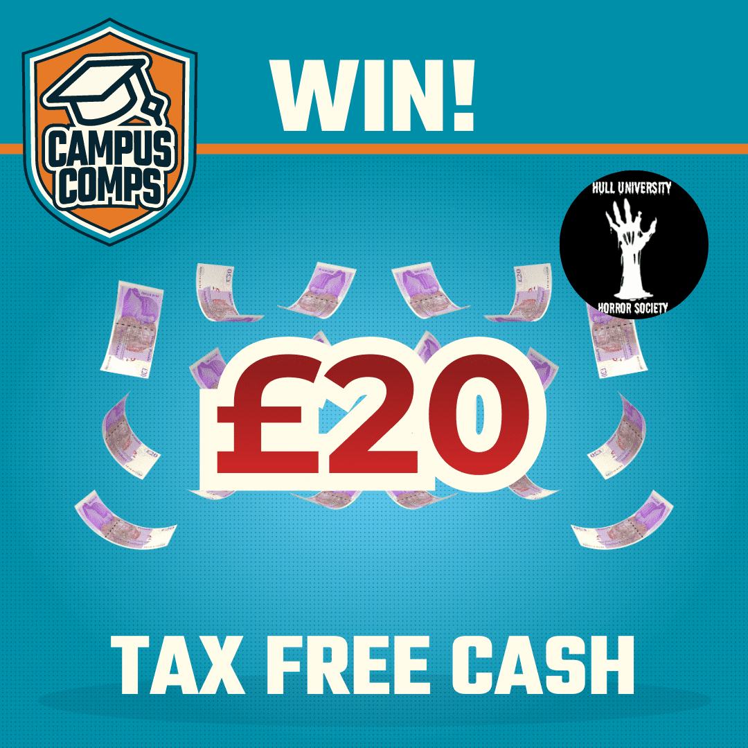 This competition’s profits will go directly to The Horror Society, a Society at the University of Hull – one of the three student groups randomly selected during one of our draws. Next time, three new student groups will be chosen, and every penny of profit from these cash competitions will go straight to them.