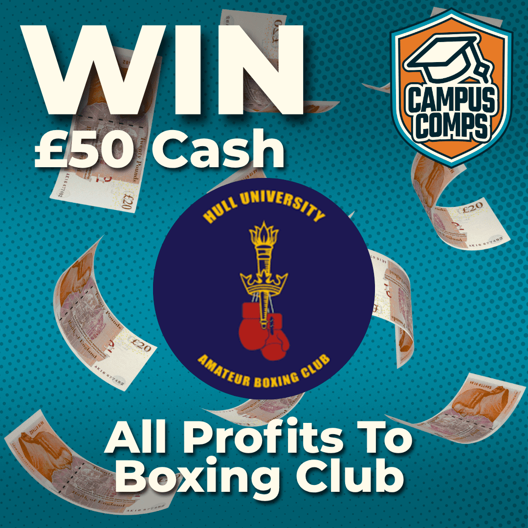 This competition’s profits will go directly to Boxing, an AU Club at the University of Hull – one of the three student groups randomly selected during our live draw on October 20. Next time, three new student groups will be chosen, and every penny of profit from these cash competitions will go straight to them.