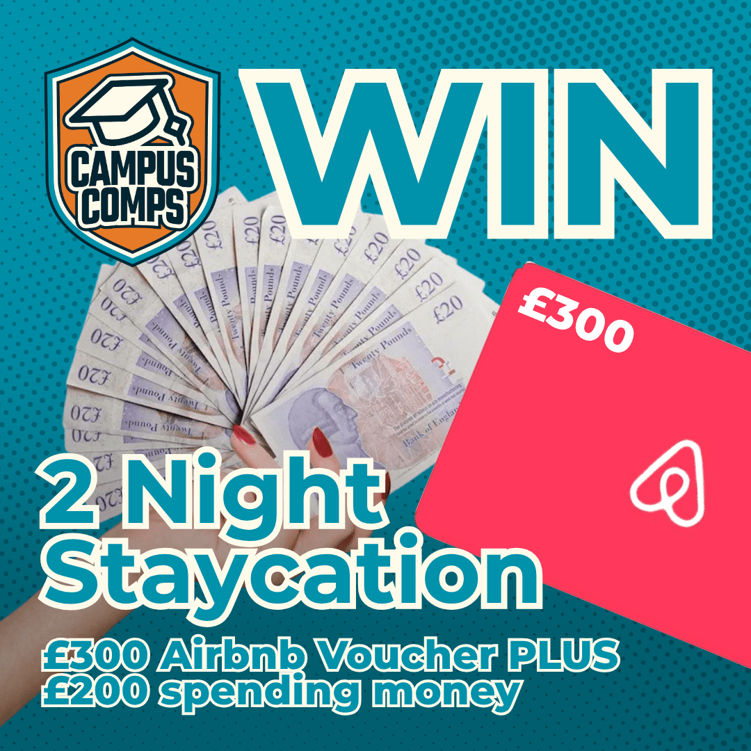 Win a 2 night Staycation bundle! This bundle contains a £300 Airbnb Voucher and £200 spending money to plan that perfect staycation getaway!