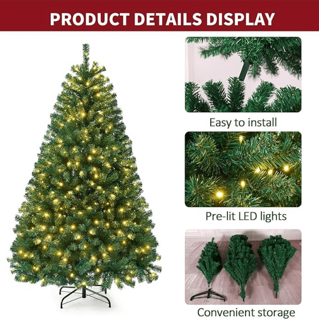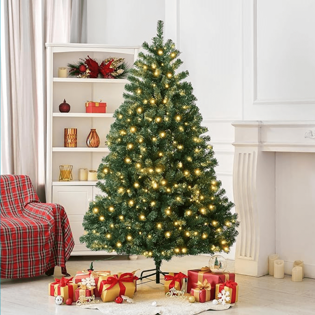 Win a 4ft Pre-Lit Christmas Tree for FREEBIE FRIDAY! Artificial Tree with 120 LED Lights 320 Branch Tips Green Bushy Christmas Pine Tree with Metal Stand.