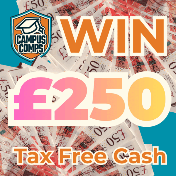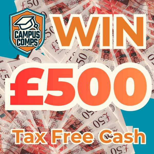 The live draw will take place on the Campus Comps Facebook page using Google’s random number generator to select the winning ticket number from all Entrants.