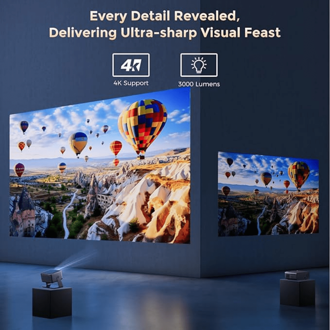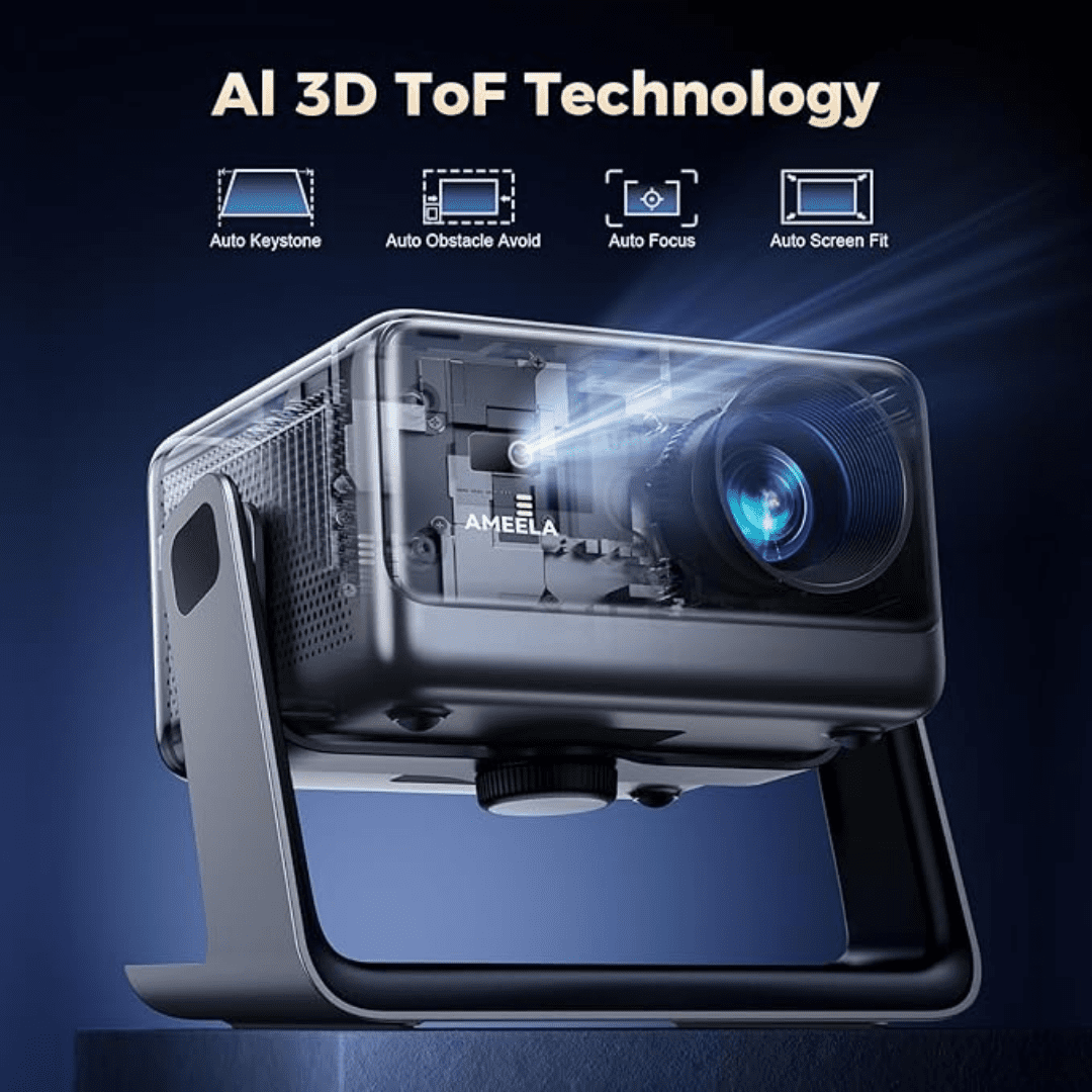 Win AMEELA’s latest 4K smart projector. It has a built-in “App Store”, allowing you to easily access your favorite applications. It supports 5G/2.4G dual-band WiFi connection, which can easily achieve wireless mirroring with smartphones or other Miracast-enabled devices. The projector supports 360° horizontal free rotation and 120° vertical adjustment. No matter at which angle, the picture always remains clear and undistorted.